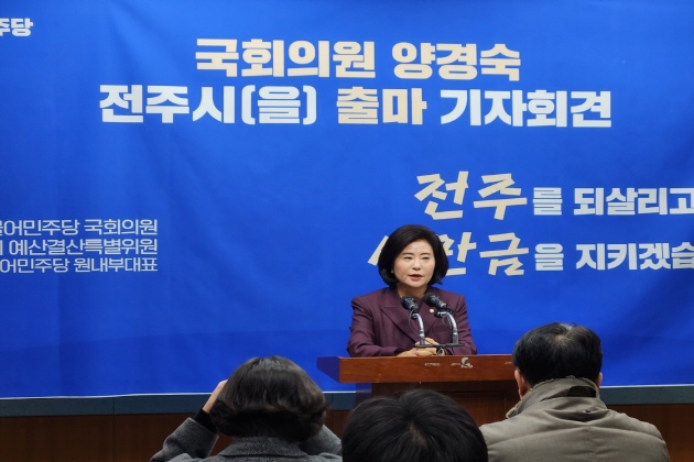 민생경제·예산재정 전문가로 의정활동을 활발하게 해 온 양경숙 더불어민주당 국회의원이 제22대 총선에서 전북 전주시(을)에 출마한다고 10일 공식 선언했다.