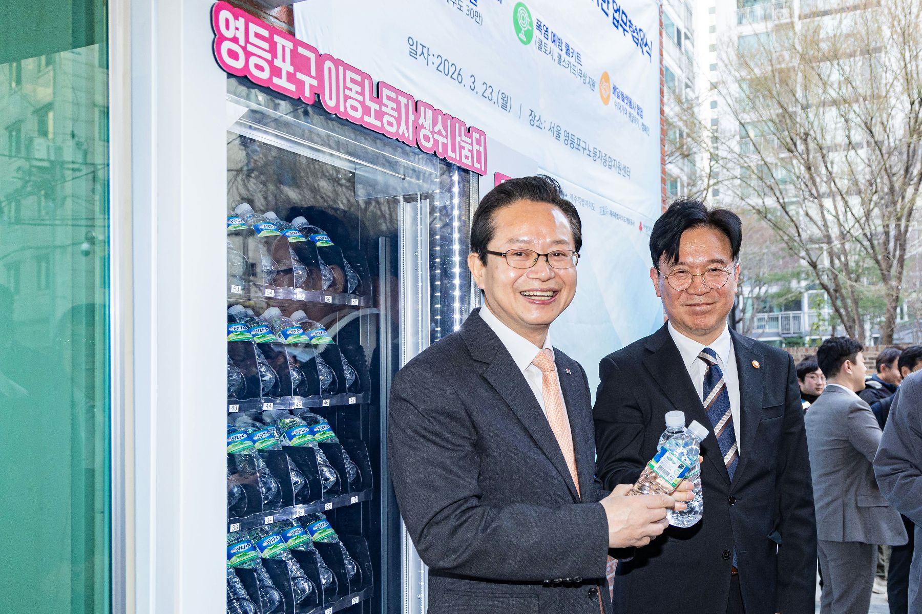 영등포구(구청장 최호권)는 김영훈 고용노동부 장관이 당산동에 위치한 ‘이동노동자 쉼터 1호점’을 방문해 현장을 살피고, 관계기관과 함께 이동노동자 온열질환 예방을 위한 생수 나눔 업무협약을 체결했다고 밝혔다.