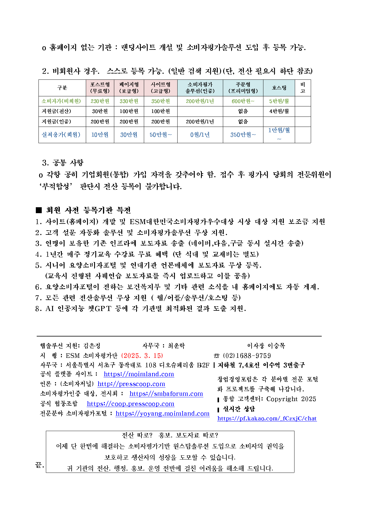 1. 회원사 경우. ( ESM 소비자평가단 인준 마크 및 검색 지원)