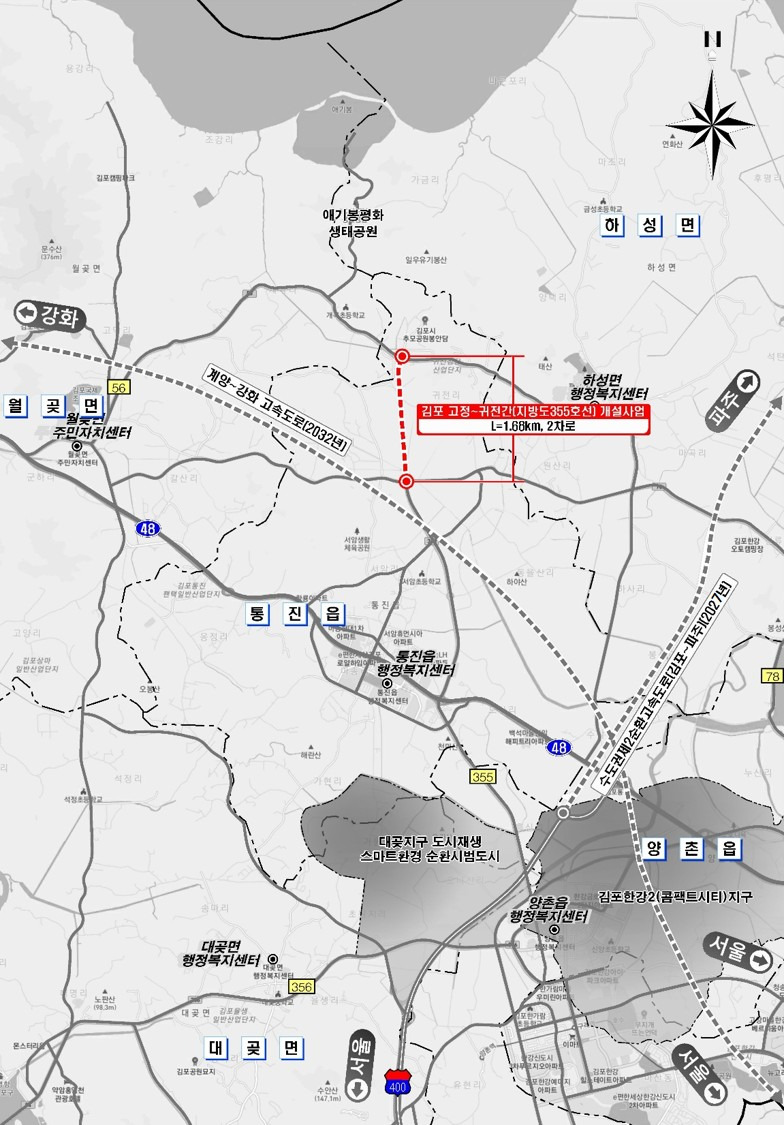해당 사업은 국지도 56호선과 지방도 355호선을 연결하는 구간으로, 향후 계양~강화 고속도로 서암 나들목과의 접근성 향상에 따라 진출입 교통량 증가가 예상되는 만큼, 선제적인 도로 확충 필요성이 높은 구간이다.